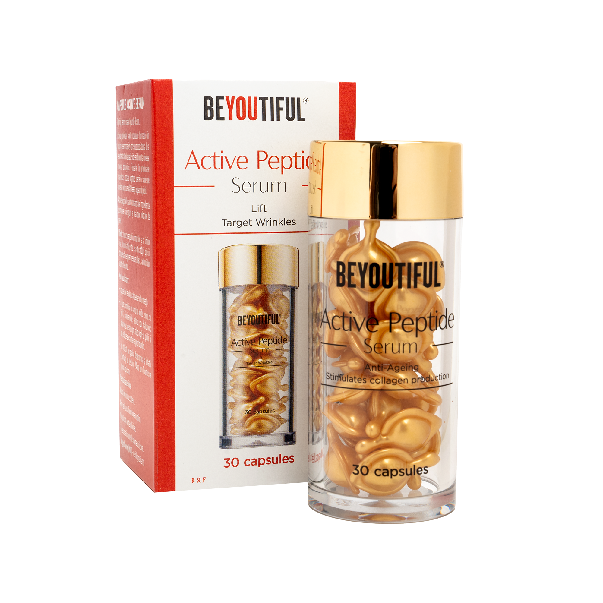 Active Peptide Serum Beyoutiful este un ser de tratament intensiv, formulat cu un complex avansat de peptide, colagen, ceramide și antioxidanți naturali, ce acționează sinergic pentru reducerea ridurilor fine și îmbunătățirea elasticității pielii. Sub forma practică de capsule monodoză, serul asigură o doză exactă de ingrediente active la fiecare utilizare, pentru o piele vizibil mai tânără și revitalizată.