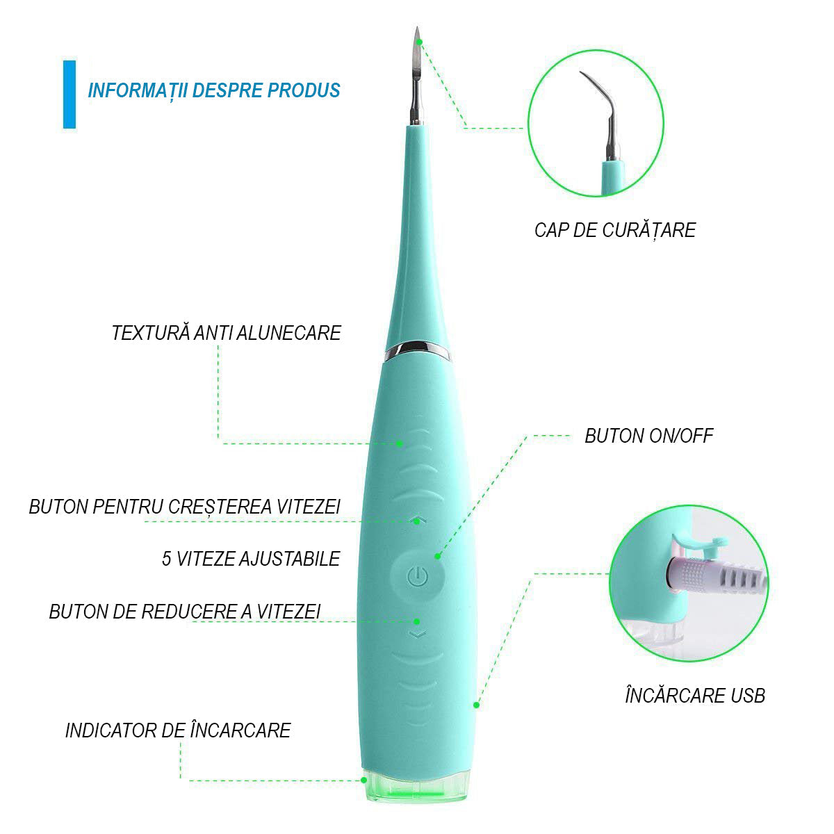 | Tip produs | Aparat electric pentru îndepărtarea tartrului și plăcii bacteriene |