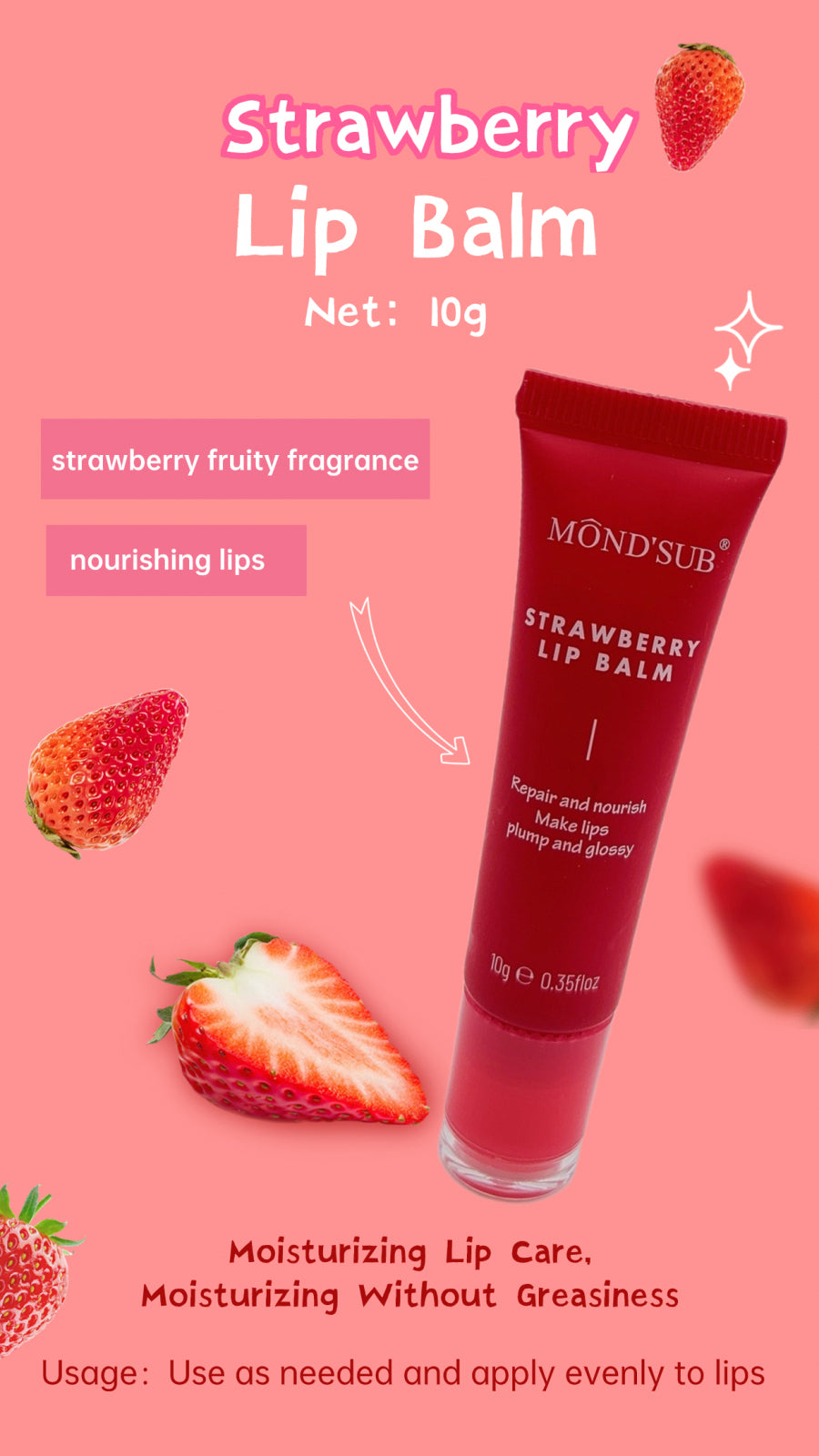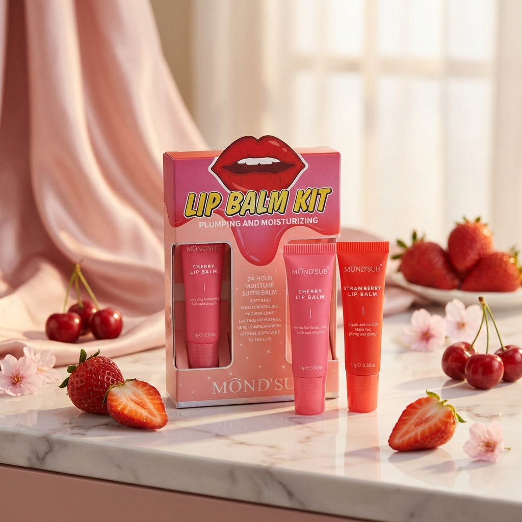 Setul de balsamuri de buze este creat pentru îngrijirea completă a buzelor: hidratare, protecție și contur definit. Formula lejeră și hrănitoare include extracte naturale de cireșe și căpșuni, bogate în antioxidanți și vitamine, pentru buze mai moi, mai netede și cu aspect sănătos.